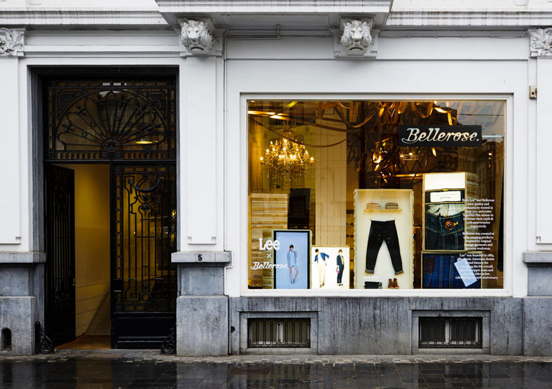 Sharing a passion for quality and authenticity, Lee® and Bellerose come together this season to celebrate their 125th & 25th anniversaries respectively. Established in 1989, Bellerose creates products inspired by original vintage garments and genuine workwear. American denim icon Lee® was founded in 1889. Over the years, the brand got famous for inventing the bib overall, the first zipper jeans and the slim rider jacket. Their histories are now celebrated in a collaboration, the result of which is proudly exhibited in the new window at the Bellerose store in Brussels.